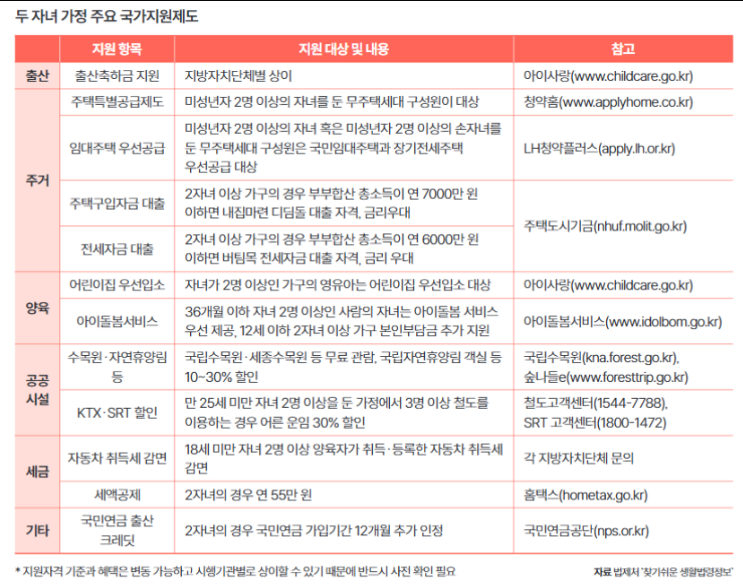 - 두 자녀 가구도 다양한 혜택을 받을 수 있음!
